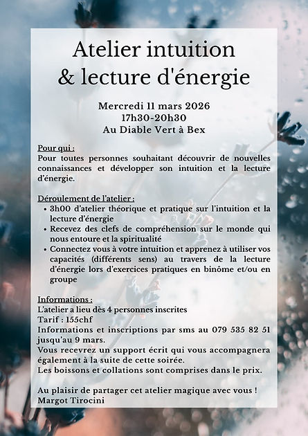 Infos et réservation obligatoire auprès d’Amandine au 079/684.98.08